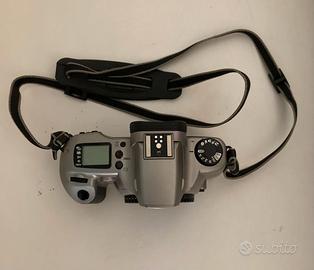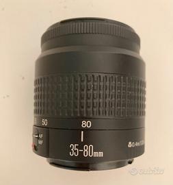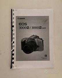 Fotocamera reflex CANON EOS 3000 con obiettivo da 35-80 mm, otturatore a scorrimento verticale sul piano focale con tempi di scatto controllati elettronicamente, mirino e flash incorporati, flash automatico a 3 zone, pellicola da 35mm, caricamento automatico della pellicola con pre-avvolgimento, riavvolgimento automatico della pellicola, alimentazione a batteria (due batterie al litio CR123A), completa di borsa e libretto di istruzioni, ottimo stato