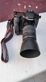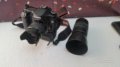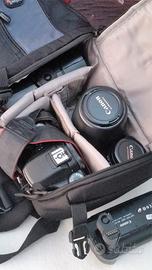 Fotocamera Reflex Canon EOS 40D completa di obbiettivi originali: Canon 35-80 mm, Canon 75 -300 mm , 2 batterie originali con caricabatterie , battery grip E2N, flash Canon 550EX ( al momento non funzionante) . Zaino marca Lowepro a tracolla . In caso di ritiro manuale regalo anche il cavalletto.