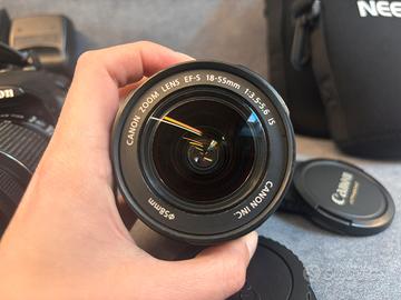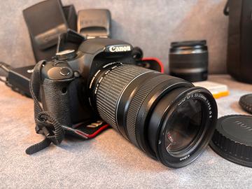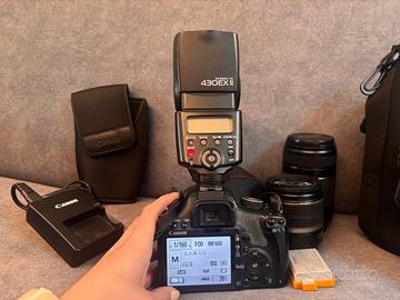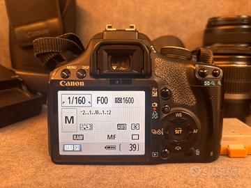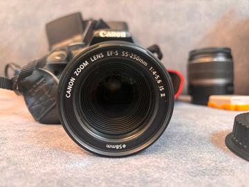 Vendo corpo macchina Canon EOS 500D + •Obiettivo zoom 18-55 mm 3.5-5.6 IS •Teleobiettivo zoom Lens EF-S 55-250mm 4-5.6 IS II • Flash esterno speedlite 430EX II • Batteria originale + extra • Cordino tracolla • Contenitori obiettivi singoli e flesh Manca solo un copri obiettivo. Tutto perfettamente funzionante. Macchinetta con modalità foto e video, perfetta per studenti o chi si approccia alla fotografia e vuole iniziare con un kit completo a basso costo. In caso di acquisto in blocco REGALO 🎁 zainetto contenitore per macchina e ottiche con divisore e porta card.