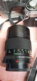 Fotocamera reflex Canon AT1, obiettivo 50 mm+tele 135 mm.