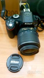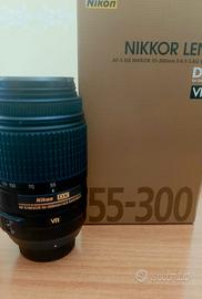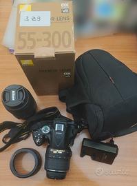 Fotocamera Reflex Nikon D5200 Obiettivo Nikon 18-55 mm Obiettivo Nikon 55-300 mm Custodia fotocamera Caricabatteria Cinghia fotocamera Nikon Paraluce