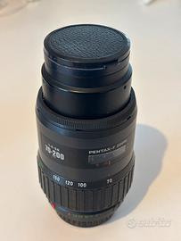 Fotocamera Reflex Pentax modello P30n con Zoom Pentax-A 28-80 mm. A corredo: Flash Metz 30 BCT 4, + Zoom Pentax-F 70-200, + obiettivo Tele Macro Tamron SP 1:8 500mm