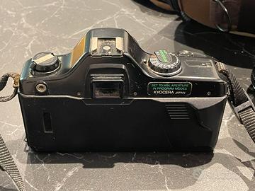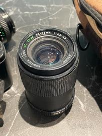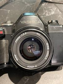 Fotocamera reflex Yashica con due obiettivi (24mm f2.8 e 35-70mm f/3.5-4.5) e borsa imbottita