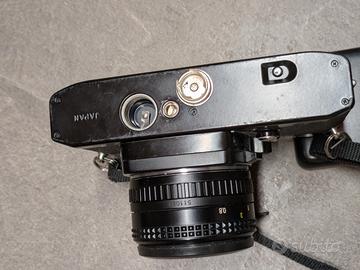 Funzionante, ottime condizioni. Completa di custodia, cinghia e tappo. Fornisco con pile, semplici LR44, usate solo per l'esposimetro, funzionante, ma è totalmente meccanica, funziona tutte le velocità anche senza pile. Lente senza graffi o funghi, solo minime imperfezioni difficilmente visibili ad occhio e ininfluenti nelle foto.