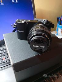 Vendo fotocamera mirrorless Samsung modello NX1000 versione nera con flash, due batterie e carica batterie originali.