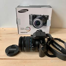 Vendo fotocamera mirrorless Samsung NX210 con sensore APS-C da 20.3 megapixel, obiettivo Samsung NX 18-55mm OIS, registrazione video in Full HD, mirino elettronico, foto formato RAW e flash integrato. La fotocamera è in ottime condizioni, venduta con scatola originale, caricabatterie originale e due batterie compatibili. Prezzo trattabile
