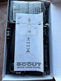 Vendo accessorio per smartphone chiamato "Scout" di DreamGE. Questo accessorio funge da combinazione di treppiede e stabilizzatore, dotato di funzionalità di tracciamento automatico del soggetto tramite intelligenza artificiale integrata, senza bisogno di app dedicate. Nuovo attare