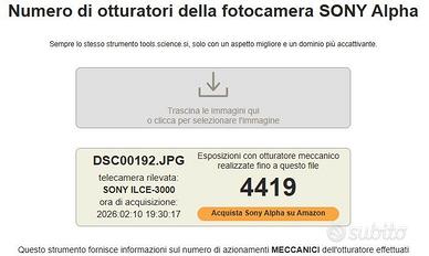 Sony Alpha 3000 (Matricola 3996954) con solo 4.419 scatti.