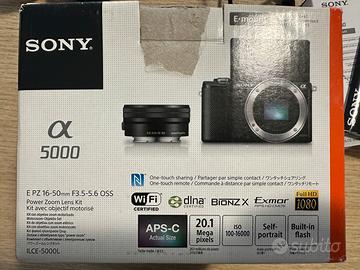 Fotocamera mirrorless Sony a5000, usata pochissimo, senza nessun segno di usura tenuta perfettamente. - Wi-Fi e NFC per un trasferimento rapido e semplice delle foto al telefono - Schermo orientabile a 180° - Scatola originale - Caricabatterie originale -Batteria originale