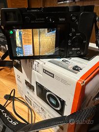 Fotocamera sony a6000 completa di trasformatore e obiettivo, compreso custodia in tessuto e tracolla originale. La macchina ha meno di 1000 scatti.