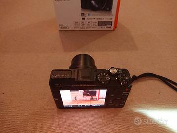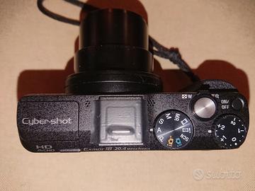 Sony HX60, zoom 30x. Sono compresi: scatola originale, cavo USB, cavo e trasformatore per ricarica batteria in macchina, una batteria originale. Non è compreso il cinturino da polso. La macchina è perfettamente funzionante, e il sensore da 20MP garantisce stampe molto belle su A3. A vederla sembra nuova, non presenta alcun segno di usura, sensore pulito, schermo LCD perfetto, pulsanti rispondenti, ghiera dei modi e ghiera della compensazione dell'esposizione con la giusta frizione. Sono il secondo proprietario, ci avrò scattato un migliaio di foto (no video) e il primo proprietario, mio conoscente, l'aveva usata ben poco. Non credo se ne trovino molte in queste ottimali condizioni.