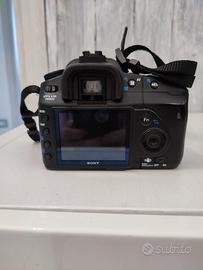 Fotocamera Sony DSLR A 200 reflex digitale con flash incorporato e obiettivi intercambiabili.Dotata di due obiettivi,caricatore,filo USB zaino Gaudi e manuale.