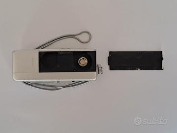 Bellissima macchina fotografica in miniatura, Minolta 16 MG. In ottime condizioni e funzionante. Completa di valigetta originale, custodie di cuoio, laccio da polso in acciaio, flash, manuale e due filtri.