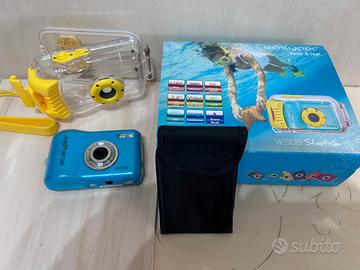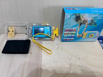In dotazione: fotocamera funzionante, custodia da trasporto con laccio, custodia x immersione, cd installazione su pc, scheda SD 2 Gb, cavo collegamento al pc