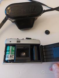fotocamera analogica Beirette VSN, prodotta nella Germania dell'Est (DDR) tra gli anni '70 e '80. È un modello iconico, perfetto per chi vuole approcciarsi alla fotografia analogica o per amanti della Lomografia, grazie alla sua semplicità d'uso e al look vintage unico. Caratteristiche principali: Obiettivo: E. Ludwig Meritar 2.8 / 45 mm (lenti pulite). Otturatore: Meccanico, con tempi da 1/30 a 1/125 + posa B. Impostazioni: Ghiera con simboli meteo per una regolazione intuitiva dell'esposizione. Formato: Utilizza comuni rullini 35mm (formato 135). Stato: Completamente meccanica, non necessita di batterie.