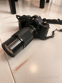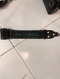 la scritta della fotocamera yashica 108 multiprogram è visibilmente consumata ed è leggermente danneggiata come nelle foto. Questo peró non unfluisce sul funzionamento della fotocamera.