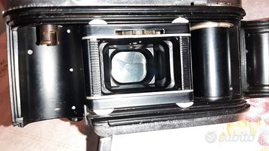 Fotocamera analogica da collezione Voigtlander VITO - B di fine anni 50. Perfettamente tenuta e funzionante. Revisione completa documentata nel 1992. Obiettivo 50 mm Focale 3.5 - 16 Tempi B - 1/300 Autoscatto Predisposta x cavalletti e flash universali. Completa di custodia in pelle originale con cavetto flessibile di scatto, paraluce e un filtro x effetti.