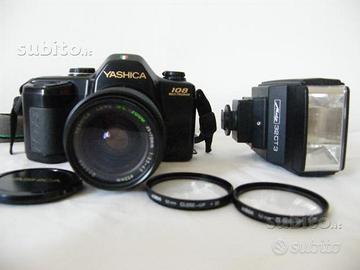 Fotocamera in buonissime condizioni "Yashica 108 multi program " reflex con manuale d'uso,e obbiettivo zoom 35-70mm con lenti aggiuntive,compreso di flash Mecablitz 32 CT3 completo di scatola originale e manuale d'uso
