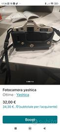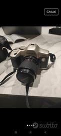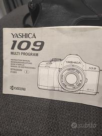 Macchina fotografica Yashica 109 Multi Program, tipo reflex, anno di produzione 1989, completa di fodero e libretto di istruzioni. Offre diverse modalità di programma di scatto. Perfettamente funzionante e in ottime condizioni.