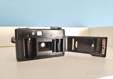 Fotocamera analogica YASHICA anni '80. Flash estraibile funzionante, completa di cinghia e custodia in finta pelle originali. Custodia collegabile con ghiera a vite. Necessità di 2 batterie stilo AA. Perfettamente conservata. Per appassionati e collezionisti.