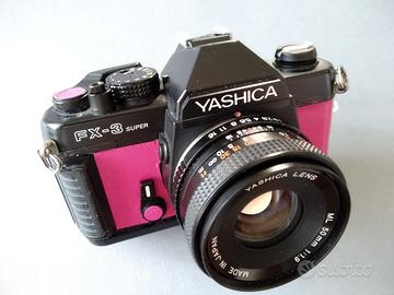 Vendo Yashica FX 3 Super fotocamera a pellicola esclusivamente manuale ad euro 160,00 trattabili. Il rivestimento in vera pelle e’ stato rifatto qualche anno fa. Cosi’ come la cinghia L’obiettivo e’ un 50 mm bello e privo di muffe Alcune leggere macchiette poco visibili sul bordo della calotta. Considerate che la fotocamera e’ degli anni 80. Ha Innesto Yashica/Contax ed e' incluso l'astuccio originale. Per un pubblico femminile ma anche no La spedizione è inclusa o scambio a mano in provincia di Padova/Vicenza/Rovigo/Venezia/Treviso. La fotocamera e’ stata revisionata dal laboratorio di Padova