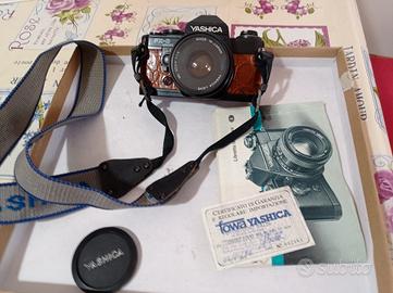 fotocamera analogica yashica FX d quarz perfettamente funzionante, revisionata professionalmente, rivestimento nuovo, in vera pelle come tutte le guarnizioni, dorso specchio ecc.completa obbiettivo 50 1'9 ml come nuovo,con tappo e istruzioni in italiano per ulteriori informazioni WhatsApp 3492294373 ritiro di persona e gradito