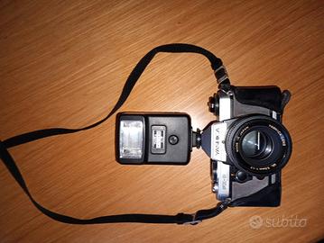 Vendo macchina fotografica della Yashica,tenuta bene con tutto il suo corredo. Sono un po' rovinate le plastiche e il rivestimento,per via dell' età.