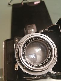Fotocamera Zeiss Ikon mod. Ikonta 521, n.di serie F56528, obiettivo Tessar 75mm, f/35, ottica Karl Zeiss, Jena n. 2250796 con otturatore Compur rapid.