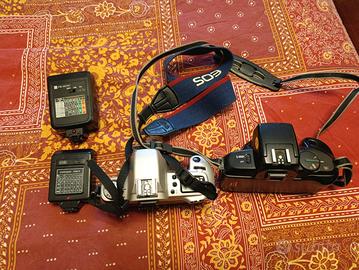 Svendo corpi macchina Reflex Analogiche Canon EOS 500N e 750 solo corpo macchina senza obbiettivo complete come da foto di tracolla perfettamente funzionanti volendo disponibili anche 2 flash supplementari a 12€ l'uno se prese entrambe con i 2 flash prezzo super scontato!!!! Il prezzo dell' annuncio è riferito ad un corpo macchina