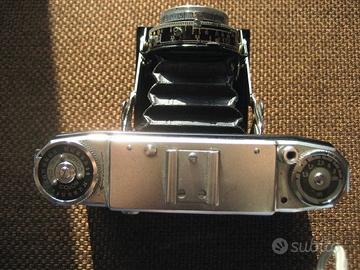 Fotocamera folder Zeiss Mess Ikonta 524/16 formato 6x6 prodotta tra il 1954 / 1955 , dotata di telemetro a sovrapposizione non accopiato , monta un otturatore Prontor con tempi sino al 1/300 e un obiettivo Novar Anastigmat f/3,5 - 75 mm.