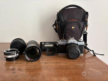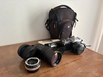 Minolta Xg9 50mm 1.7 corredata di obiettivo 200mm Kenko e duplicatore di focale. Omaggio multi function e borsa.