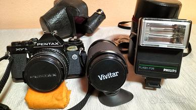 ASHAI PENTAX MV1 reflex 35 mm 50/1.7, VIVITAR 52mm 70/210 macro f4.5. Custodia, flash Philips P26, accessori, treppiedi e borsa. Tutto perfettamente funzionante e "maniacalmente " conservato. Spedizione con accuratissimo imballo + euro 20, pagamento con B.B.