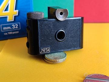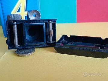 È effettivamente una macchina fotografica a tutti gli effetti. Veniva data come gadget, oltre che ad essere venduta.Questo avveniva negli anni 50. Era prodotta in 4 colori : nero,marroncino,verde e rosso. Il colore più ricercato è il rosso. Il modello in questione è sopravvissuto con una mancanza di materiale sul fianco del corpo. Vedi foto. Riservato a collezionisti al prezzo di euro 60. La versione in rosso che è integra viene ceduta ad euro 220. A richiesta posso produrre foto.