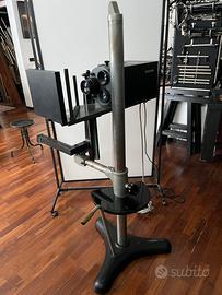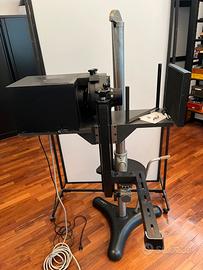 Frontifondografo Broncolor, funzionante. Con 3 obbiettivi. Completo di accessori. Con presa per generatore Bowens. Inclusa colonna. Ritiro e trasporto a cura dell’acquirente.