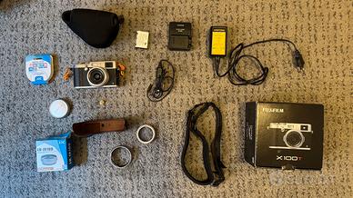 Fuji x100t, ottime condizioni, perfettamente funzionante. Confezione originale, due caricabatterie con cavo auto, tre batterie, filtro e paraluce jjc, gorilla glass sull schermo, custodia in neoprene, semi-custodia in pelle, cinghia. Shutter count 37k.
