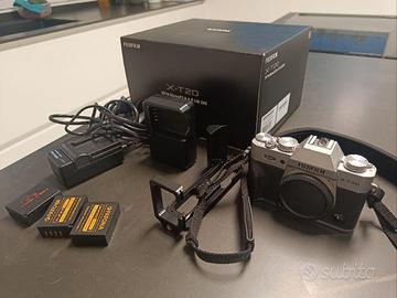 Fuji xt20 due carica batterie, 3 batterie, un smallring, dei gadget vari, due tracolle( quella originale e una piu comoda). Scatola originale