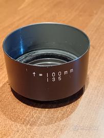 Paraluce in metallo 49 mm Originale Fujica per tele da 100 e 135 È alto 30 mm adattabile ad altre focali, è dotato di tappo proteggi filetto.