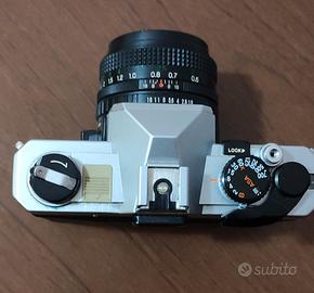Ottimo stato estetico,tutto il resto funziona compreso esposimetro,obiettivo chiaro no funghi,selettore tempi,contapose ect.Batterie nuove inserite.Non funzionante,per parti.