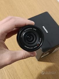 Obiettivo grandangolare Fujifilm Fujinon XF 16mm f2.8 R WR in condizioni pari al nuovo, usato ma tenuto con molta cura, compreso di paraluce e scatola originali.