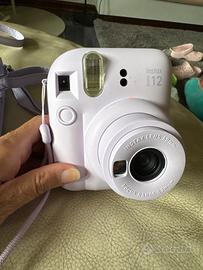 Fotocamera istantanea Fujifilm Instax Mini 12 con sua custodia.