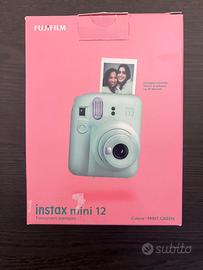 Vendo NUOVA Fujifilm Instax Mini 12 in colore Mint Green, praticamente nuova e usata pochissimo. Include scatola originale rosa, tracolla verde, manuale e tutti gli accessori. Perfetta per foto istantanee divertenti, con modalità selfie e close-up automatica.