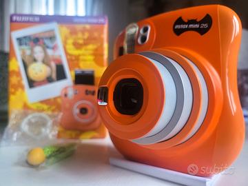 Vendo Fujifilm Instax Mini 25 – Halloween Edition, una rara versione speciale in vivace colore arancione con dettagli tematici.