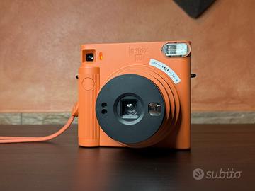 Fotocamera istantanea Fujifilm Instax Square SQ 1 in colorazione arancione, funzionante, in condizioni estetiche con segni di utilizzo come mostrato in foto.
