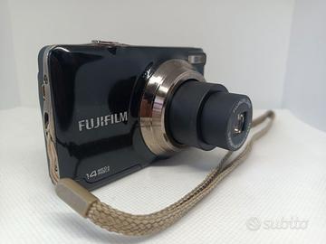 Fotocamera Fujifilm JV300 nera con una batteria (usata) e cavo usb. Buono stato, flash funzionante. Si riceve ciò che è in foto. Obiettivo zoom da 5.0mm a 25.0mm (equivalente del formato 35mm 28mm a 140mm), zoom ottico da 5x e zoom digitale da 6.7x. Sensore da 14 megapixels, display LCD da 2.7 pollici, ISO manuale (P) da 100 a 1600 e auto, stabilizzatore d’immagine, bilanciamento del bianco, autoscatto, flash incorporato con diverse modalità, registrazione video e diverse modalità di scatto. Utilizza memorie SD e SDHC. Disponibili foto di esempio. NO GARANZIA, NO RESI.