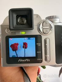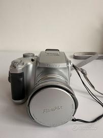 Questa è una fotocamera digitale vintage Fujifilm FinePix S3000 con optical zoom, funzionante con batterie comprese.