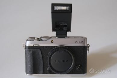 Vendo Fujifilm X-E3 SOLO CORPO, in ottime condizioni, compatta, leggera, completa di flash Fuji EF-X8, poggiadito, batteria, caricabatteria, tracolla, tappo, scatola originale a € 600.