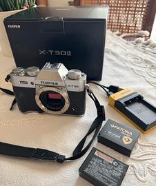 Macchina fotografica fujifilm X-t30 II usata in ottime condizioni 500 scatti,solo corpo 2 batterie più caricabatterie scatole e libretti acquista nuova novembre 2022 con fattura d’acquisto visionabile no scheda di memoria. Obbiettivo xc 15 45 pari al nuovo compreso nel prezzo.
