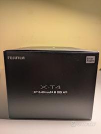 Vendo macchina fotografica Fujifilm X-T4 come nuova, usata pochissimo, senza segni di usura. Dotata dell'obiettivo originale 16-80mm, della batteria e caricabatterie originale, della confezione originale e del manuale d'uso, oltre a quant'altro era presente nella scatola originale.