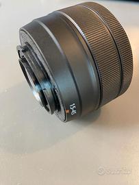 Obiettivo Fujifilm XC 15-45mm f/3.5-5.6 OIS PZ per la linea di fotocamere X-mount con sensori di dimensioni APS-C. Offre una lunghezza focale equivalente di 23-69mm. Corpo in plastica leggerissimo. Perfettamente funzionante, condizioni estetiche ottime.