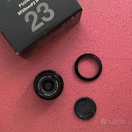 Vendo Fujifilm XF 23mm f/2 R WR in ottime condizioni. Obiettivo utilizzato con cura e sempre ben conservato. Lenti pulite, senza graffi, ne muffe. Autofocus preciso e velocissimo. Il 23mm f/2 WR (equivalente a circa 35mm) è una lente compatta, veloce e molto versatile, ideale per: •street photography •reportage •viaggi •uso quotidiano Compatto e leggero, con costruzione solida e tropicalizzazione (WR). Incluso: •obiettivo •tappo anteriore e posteriore •paraluce •scatola con sacchettino Disponibile anche il corpo Fujifilm X-Pro2, venduto separatamente o in kit (vedi altri annunci). Vendo per inutilizzo. Disponibile consegna a mano oppure spedizione. Per qualsiasi informazione scrivimi pure.